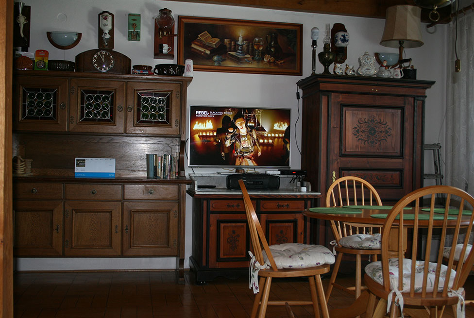 První nadzemní podlaží: vchod je řešen vstupní předsíní, kde je odkládací stěna na konfekci a dva botníky. Následuje chodba, kde na pravé straně je prosklená nápojová skříň a na levé straně je koupelna s vanou a toaletou. Ta je ukončena kuchyní s pitnou vodou vybavenou velkou lednicí s mrazákem, samostatným mrazákem, mikrovlnnou troubou, plynovým sporákem s elektrickou troubou, horkovzdušným hrncem, konvicí na ohřev vody a snídaňovým stolem pro dvě osoby. Výstup z kuchyně je do společenské místnosti, kde se nachází krb, kožená sedací souprava 3 plus 1, barevná LCD televize, rádio a upozornění na kód WIFI. Odtud je vstup na terasu (kuřácká) a na schodiště do druhého nadzemního podlaží.
